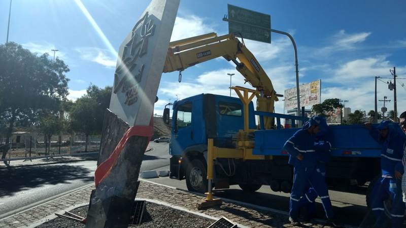 De acordo com a secretária de Cultura, Turismo e Esportes, Maria Elena Alencar, o próximo passo é buscar um serviço de revitalização para o equipamento. Os reparos foram executados na tarde da última terça-feira (30) e ficaram a cargo das equipes da Secretaria de Desenvolvimento Urbano e Sustentabilidade (SEDURBS), que estiveram no local para recolocar o monumento no lugar. Um caminhão Munck e uma retroescavadeira foram utilizados no serviço. (Foto: Ascom PMP/divulgação)
