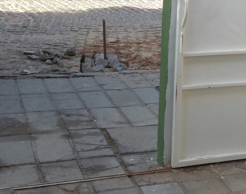 Perguntei se não iriam consertar os paralelepípedos, eles disseram que isso não é com eles. Que eu teria que ligar para o 0800-081-0195 e fazer a solicitação desse reparo.