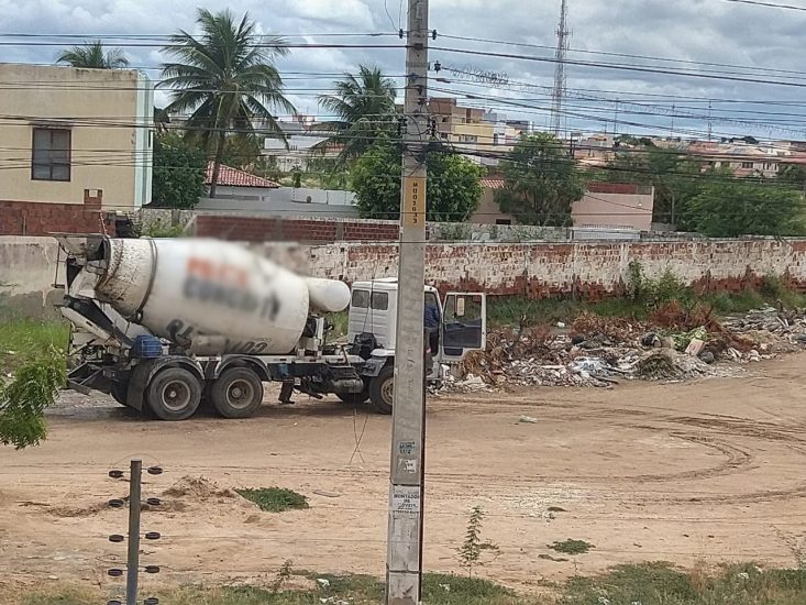 Um comunitário flagrou um caminhão- betoneira (veículos utilizados para transportar concreto e misturar materiais) jogando os restos de resíduos em um local da Rua Marcos Passos, no Bairro São José, área central de Petrolina.