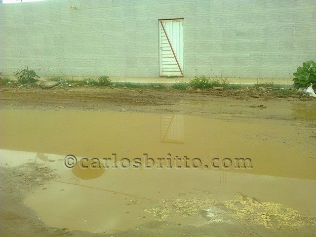 É lamentável a situação da minha rua com as últimas chuvas desta semana. O problema maior é a ‘lagoa’ que fica na porta da minha casa e eu ainda tenho que aceitar motoqueiros passando na calçada, porque os mesmos não querem sujar suas motos.