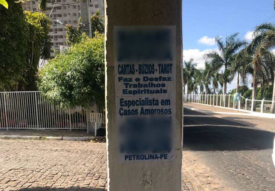 Promessas de adivinhações, trabalhos espirituais e de trazer a pessoa amada de volta espalhadas em cartazes por toda a cidade de Petrolina continuam aborrecendo muitas pessoas. Uma leitora do Blog conta que, mesmo removendo os cartazes do poste em frente à sua residência, pessoas desconhecidas voltam a colocar as propagandas.