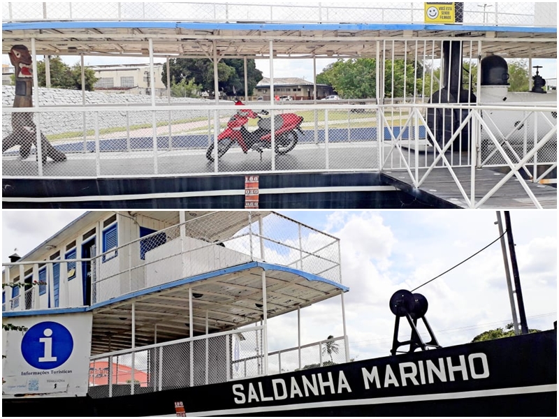 Uma motocicleta estacionada dentro do Vapor Saldanha Marinho, um das principais atrações turísticas de Juazeiro (BA), chamou a atenção de um leitor que estava tirando foto com a família no local, na tarde de quarta-feira (20). O barco, por ter sido o primeiro vapor a navegar no Rio São Francisco, em 1871, atrai pessoas todos os dias para registros fotográficos e passeios pela Orla da cidade.