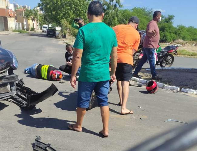 Um mototaxista ficou ferido agora à tarde, ao se envolver em um acidente na rotatória próximo ao River Shopping de Petrolina. Ele foi atingido por um carro de passeio.