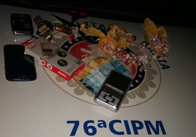 Na residência da acusada os policiais ainda encontraram uma trouxa de cocaína, uma balança de precisão e pouco mais de R$ 142, além de dois relógios dourados, dois aparelhos celulares e uma câmera fotográfica digital. Sabrina foi conduzida à Delegacia, juntamente com o material apreendido. (foto/divulgação)
