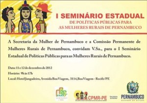 A partir das 14h, será realizada uma mesa redonda sobre programas e projetos de Desenvolvimento Rural Sustentável, com a presença de representantes do Prorural e do Banco do Nordeste do Brasil. Em seguida serão iniciados os trabalhos em grupo. A ação também vai avaliar o processo de fortalecimento da Comissão Permanente de Mulheres Rurais de Pernambuco (CPMR-PE) e mobilizar parcerias para a efetiva implementação do 1º Plano de Políticas Públicas para as Mulheres Rurais de Pernambuco (PPPMR-PE).