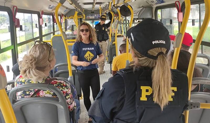 Durante a ação, policiais e servidoras administrativas orientaram passageiros de ônibus e de vans sobre como identificar a importunação sexual, que se caracteriza como qualquer prática de cunho sexual realizada sem o consentimento da vítima, além de repassar os canais de denúncia.