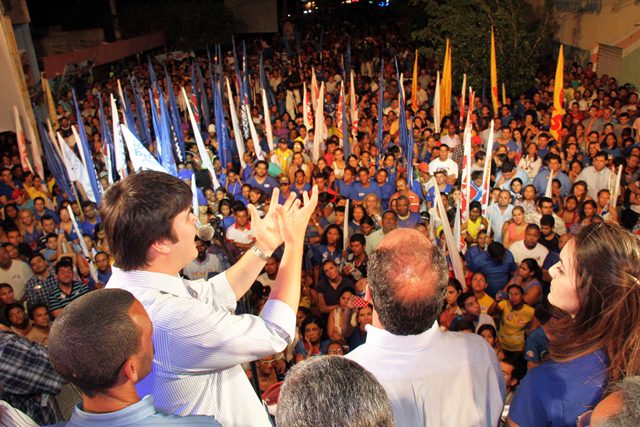 O candidato a prefeito Fernando Filho (PSB) arrastou uma multidão para o bairro José e Maria, na zona leste de Petrolina, num comício realizado na noite de ontem (03). O bairro foi escolhido pela coligação “Unidade Por Petrolina” para encerrar a campanha do socialista por ser emblemático de importantes vitórias de Fernando Bezerra Coelho, pai do candidato. E mais uma vez os moradores deram uma demonstração de apoio ao grupo.