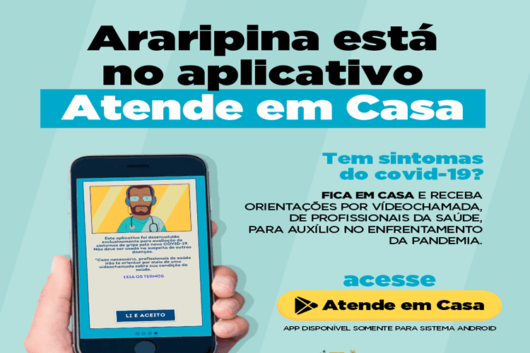 O município de Araripina (PE), Sertão do Araripe, foi incluído no aplicativo ‘Atende em Casa’, cujo objetivo é passar dicas para a população sobre o novo coronavírus (Covid-19), seja para manter o isolamento domiciliar ou, após uma teleorientação feita por um profissional de saúde, fazer a busca qualificada por um serviço de saúde mais próximo da sua casa.