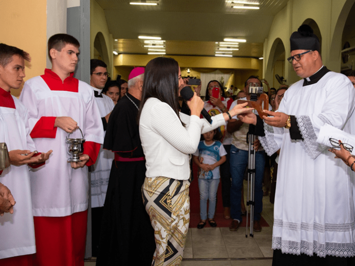 Durante a posse do novo pároco, Josimara entregou ao padre, simbolicamente, as chaves do município e o recepcionou em sua nova paróquia. “Dormentes é uma cidade tranquila, com um povo muito acolhedor, e estamos muito felizes em tê-lo aqui conosco, Padre Maurílio. Que Deus abençoe a sua missão aqui em nossa cidade“, agradeceu. A posse do novo administrador paroquial, foi realizada nesta sexta-feira (6).