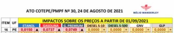 Em relação à gasolina e ao álcool, o aumento será, respectivamente, de 7,50 e 1,50 centavos. E não se refere à alíquota do ICMS, que permanece a mesma, mas a um aumento da “pauta do ICMS”.