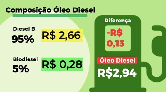 Segundo essa fonte, o que vai acontecer é um aumento de 13 centavos no litro do diesel, porque o combustível tem na sua composição o biodiesel, que passará de 10% para 12% na mistura. “Esse aumento é real e será repassado integralmente por todos, porque é uma coisa automática”, frisou. A fonte justificou ainda que se o biodiesel – o qual, embora seja benéfico ao meio ambiente, é considerado um combustível mais sujo – fosse retirado da mistura, o diesel ficaria bem mais barato.