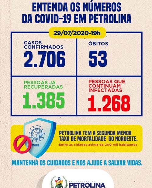 Apesar dos 102 novos casos confirmados do novo coronavírus (Covid-19) em Petrolina, registrados nesta quarta-feira (29), o município contabiliza um dado animador: o número de curas clínicas (1.385) voltou a superar o de pessoas que ainda continuam infectadas pela doença (1.268). Os dados estão no boletim atualizado da Secretaria Municipal de Saúde.