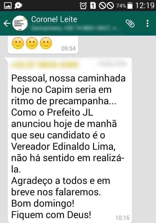 Sou da educação e jamais daria meu voto para esse coronel…… Essas pessoas da educação que estão falando que não votam no candidato de Júlio é pq nunca votou no grupo….Parabéns Prefeito!!!! VC mostrou que é muito inteligente….Blogueiro realmente é um pequeno grupo da educação que defende o nome do coronel…….tem mais gente feliz/aliviado com esse anúncio do que triste…..