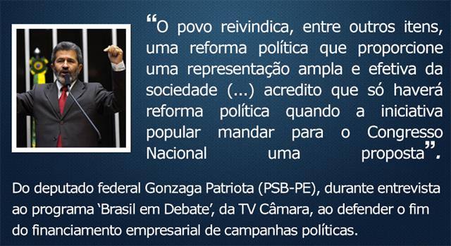 Ainda bem que está reconhecendo essa proposta que há muitos anos LULA vem defendendo. Há pouco tempo o deputado dizia em um dos seus comerciais no radio que o fator previdenciário teria sido criado por LULA. Deputado olhe para o seu passado quando defendia o PT, o Sr. sabe muito bem que esse tipo de miséria foi criado por FERNANDO HENRIQUE / MARCO MACIEL. Defender agora proposta popular é uma confissão de que o Congresso Nacional só serve para dar mais despesas aos cidadãos que trabalha dia e noite para sustentar deputados e senadores imprestáveis. A reforma política deve ser a primeira de uma série, O principal ponto seria o financiamento público de campanha, além de desvincular os parlamentares e executivos do poder econômico, propicia oportunidade a qualquer cidadão de lançar-se candidato já que disputará em condições de igualdade; Um segundo seria estabelecer o máximo de dois mandatos para um mesmo cargo, assim evitaria a “profissão de Vereador, deputado e senador” imprestáveis; Terceira seria a fidelidade partidária por dois mandatos, evitaria o parlamentar macaco; Quarta, limitar o número de partidos políticos em 04 ou 06 acabando com esse monte de partidos de aluguel estimuladores da corrupção e que obriga governadores e presidente da República a fazer conchavos inaceitáveis e loteamento de cargos, só existe ideologia para: um partido de direita, um de esquerda, um de centro direita e outro de centro esquerda o resto é oportunismo.