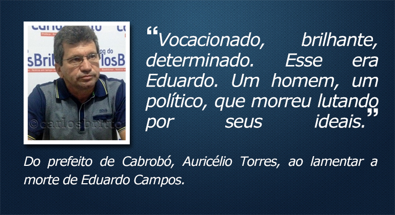 O que eles disseram… por Carlos Britto // 14 de agosto de 2014 às 14:00 Tags: Auricélio Torres (PSB), Cabrobó, Eduardo Campos, Luto, Petrolina