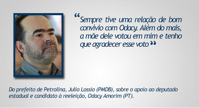 Primeiro a mãe de Odacy votou em Julio, porque quando teve a disputa partidária entre Gonzaga e Odacy para quem seria candidato a prefeito da cidade, e Odacy perdeu essa convenção, e como Odacy não saiu candidato, ele apoiou Julio, foi isso que Julio quis dizer, por isso a família de Odacy votou em Julio. Se vocês não sabem não critiquem o rapaz, pois ele “Odacy” é mais honestas do que certas pessoas que andam esculhambando o país, vão se informar primeiro antes de jugar.