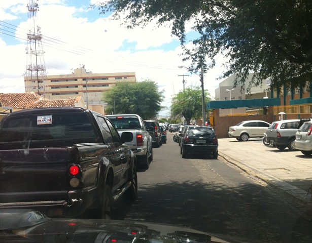 É o caso da foto acima, registrada agora há pouco, por um leitor do Blog. Na imagem é possível ter uma ideia do caos. Carros estacionados nas duas faixas, formando filas duplas, geram mais um problema para os motoristas.
