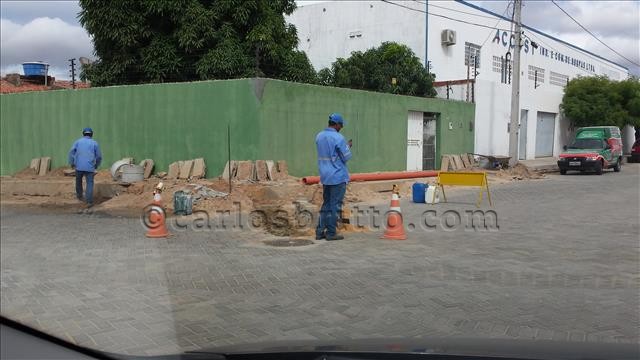 O problema é que a recente pavimentação intertravada, feita pela prefeitura municipal, ainda nem foi inaugurada e já está sendo retirada pela Compesa para uma intervenção no saneamento básico.