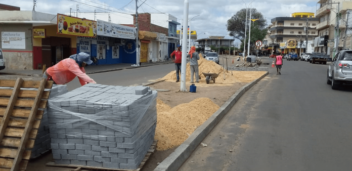 A obra de requalificação da Avenida Adolfo Viana, em Juazeiro (BA), foi retomada na segunda-feira (6) pela Secretaria de Obras e Desenvolvimento Urbano (Sedur) e começou a receber o piso intertravado no canteiro Central.