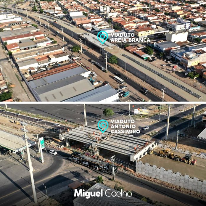 “O viaduto entre o José e Maria e a Areia Branca está praticamente pronto, já o nas imediações do Antônio Cassimiro avança a cada dia. Uma obra deste porte é grande não só em tamanho, mas em importância para o desenvolvimento da cidade”, declarou Miguel.