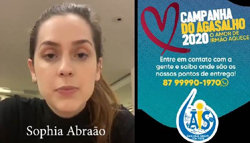 Mais uma vez a atriz Sophia Abraão empresta seu nome à iniciativa da ONG (Confiram vídeo). Os interessados em colaborar devem doar roupas e/ou cobertores em bom estado, entrando em contato pelo telefone (87) 9 9990-1970. Toda colaboração será bem-vinda.
