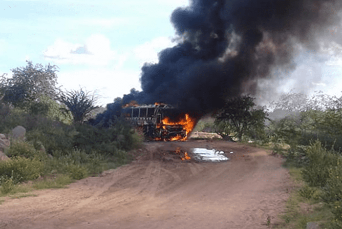 Ônibus da Falcão Real pega fogo na zona rural de Curaçá