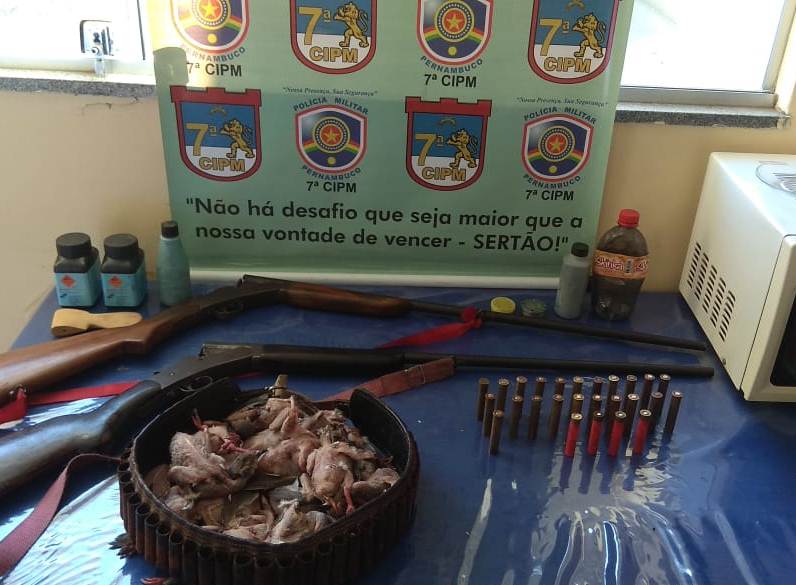 Equipes da 7ª Companhia Independente de Polícia Militar (CIPM) apreenderam, ontem (13), duas espingardas e vários animais silvestres (arribanças) no Assentamento Boqueirão, na zona rural de Santa Maria da Boa Vista (PE), no Sertão do São Francisco.