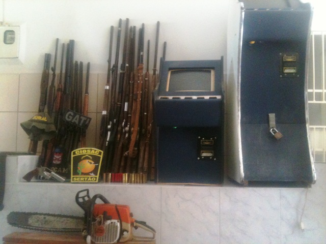 A ação aconteceu no Assentamento Serra Negra, na zona rural do município. Ao todo, a Polícia Militar apreendeu seis rifles, duas espingardas, um revólver, duas máquinas caça-níqueis, 11 espingardas de fabricação caseira, além de 80 munições e dois galões de combustível que estavam armazenados de forma irregular.