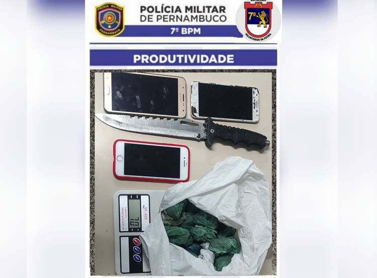 Dentro da sacola os PMs encontraram uma pequena quantidade da erva, mas um deles disse que havia mais 27 invólucros em sua casa, totalizando 70 gramas de maconha apreendida. Na ação a polícia também apreendeu uma faca tática, uma balança de precisão e três aparelhos celulares para averiguação da origem, mas foram detectadas restrições. A ocorrência foi registrada na delegacia local.