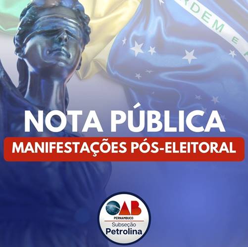 A Subseção da OAB Petrolina se manifestou, por meio de nota, sobre as manifestações pós-eleição, que ocorrem em todo país e também no município. Confiram abaixo na íntegra: Em relação às manifestações havidas nos dias 31/10 a 02/11/2022, a Subseção da OAB Petrolina vem ratificar os posicionamentos já exarados pelo Conselho Federal e pela Seccional OAB/PE, no sentido de entender livre o direito de manifestação de todo e qualquer cidadão, desde que preservados os demais ordenamentos constitucionais. Enquanto guardiã da Constituição Federal, a Ordem dos Advogados do Brasil – Subseção Petrolina/PE, não coaduna com a incitação a qualquer ato que vá de encontro aos preceitos e instituições democráticas, o que consistiria em verdadeiro retrocesso ao aclamado, e a tantas duras […]