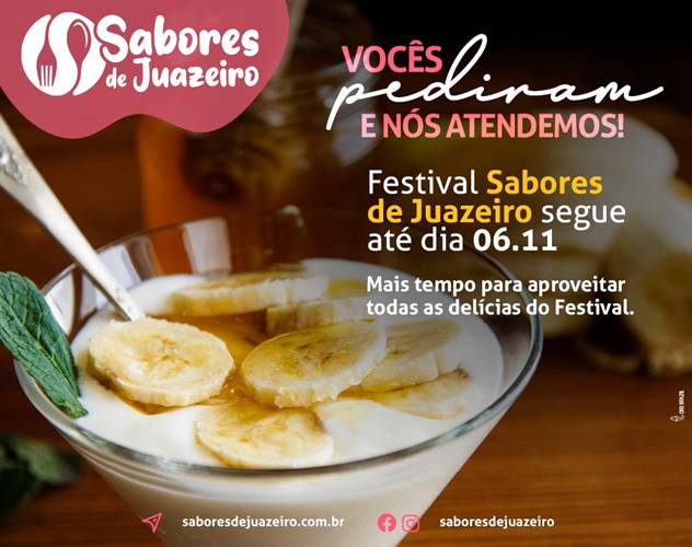 Diante do sucesso apresentado, a 2ª edição do Festival Gastronômico ‘Sabores de Juazeiro’ será prorrogada até domingo (6). Com o prazo esticado, quem quiser experimentar as várias possibilidades das 88 delícias concorrentes, ganhou mais tempo para aproveitar o evento. O ‘Sabores de Juazeiro’ é uma realização do Sebrae, em parceria com a Prefeitura de Juazeiro – através da Secretaria de Cultura, Turismo e Esportes (Seculte) e a Agência de Desenvolvimento Econômico, Agricultura e Pecuária (Adeap), além de parceria com empresas como o Pede. Aí. Os pratos vão desde entradas aos principais, passando por lanches, sobremesas e drinks. O tema deste ano é “Os frutos do São Francisco” e, por isso, há pratos diversificados com a inserção da manga, dos peixes […]