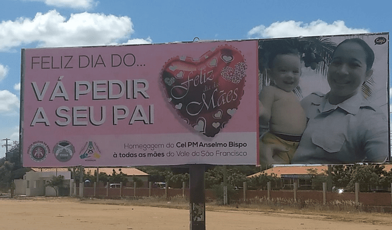 A homenagem ao Dia das Mães realizada pelo Comando de Policiamento Regional Norte (CPRN), em Juazeiro (BA), recebeu críticas de leitores deste Blog. Exposta em outdoors pela cidade, a publicidade traz a frase “Feliz dia do… vá pedir a seu pai”. Para os leitores – que preferiram não se identificar -, a frase é considerada uma forma de “opressão” dos homens sobre as mulheres, pois muitas mães “criam seus filhos sozinhas, por terem se relacionado com homens que se negaram a permanecer ao lado da mãe dos seus filhos“. A reportagem solicitou um posicionamento do CPRN e foi informada que o Coronel Anselmo Bispo não está na cidade, mas ele falará sobre o assunto quando retornar.
