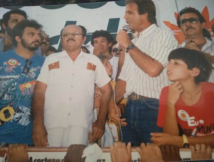 No ‘Éramos Assim…’ de hoje (27), um momento marcante em Salgueiro (PE), no Sertão Central. O atual vereador Ednaldo Barros (de barba), nos anos 80, quando apresentava grande comícios na cidade, a exemplo da campanha de José Múcio, então candidato a governador de Pernambuco. Entre Ednaldo e Múcio está Dr.Romão Sampaio. A história de Ednaldo começou cedo no microfone.
