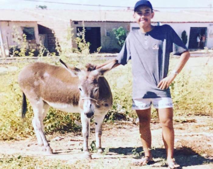 Nem sempre Gabriel Menezes foi essa voz combativa na Câmara de Vereadores de Petrolina. Também é verdade que ele ganhou uns ‘quilinhos’ a mais depois dessa foto. Mas é fato que o “menino” Gabriel já gostava muito de animais sertanejos, exatamente como é hoje. Na foto, quando ele tinha mais ou menos 15 anos, Gabriel aparece ao lado de um jumento, posando feliz. Daí para as vaquejadas (sua paixão) foi um pulo.