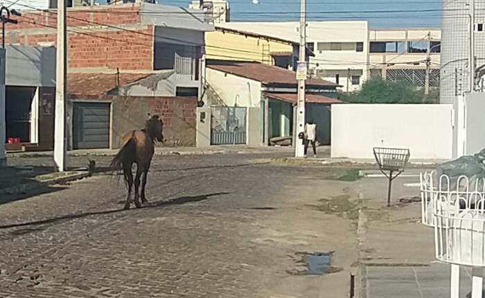 Mesmo depois que a Agência Municipal de Vigilância Sanitária (AMVS) firmou uma parceria com o Ministério Público de Pernambuco (MPPE) para tentar coibir a soltura de animais nas ruas de Petrolina, flagrantes de bichos de grande porte na área urbana da cidade continuam sendo feitos. É o caso da foto acima, na qual um cavalo ‘passeia’ livremente pela Rua da Pedreira, no Bairro São José (Alto Cheiroso), área central da cidade. “Na Rua da Pedreira, as pessoas e os veículos convivem com animais o tempo inteiro. Um absurdo“, afirma o leitor que fez o flagrante, por meio do WhatsApp, chamando atenção para o perigo. Segundo a AMVS, por meio do Termo de Cooperação firmado com o MPPE, o proprietário que […]