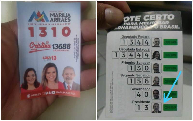 ‘Santinhos’ de candidatos ao lado de Lula continuam sendo distribuídos em Petrolina Estranhamente ‘santinhos’ dos candidatos do PT votados em Petrolina continuam aparecendo com o nome do ex-presidente Lula – e não de Fernando Haddad – como candidato a presidente pelas ruas da cidade. Os santinhos com a vereadora Cristina Costa, candidata a estadual, dobrando com Marília Arraes, candidata a federal, e os de Odacy Amorim com a esposa Dulcicleide Amorim – respectivamente candidatos a federal e estadual pelo partido – ao lado de Lula continuam sendo insistentemente distribuídos em Petrolina. O problema é que esse ‘detalhe’ fere o Artigo 23 do Código Eleitoral (Lei Federal 4.737/65). Este blogueiro entrou em contato com a assessoria de Cristina Costa, a qual […]
