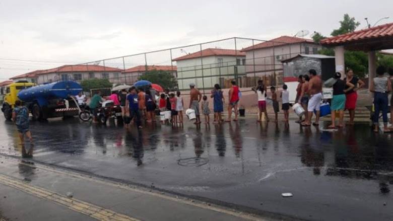 Choveu neste final de semana em Petrolina, mas a água que caiu no chão não matou a sede da comunidade em diversos bairros da cidade. É que falta água vergonhosamente em várias comunidades. E são comunidades nem tão distantes do rio. Cenas antes comuns de se ver na zona rural da cidade, agora começam a aparecer na zona urbana. Falta água há mais de cinco dias nos Bairros Dom Avelar, São Joaquim, Padre Cícero, Vila Débora, Vila Marcela, Loteamento Recife, Residencial Monsenhor Bernardino, Vivendas I e II, Buona Vita e Loteamento Santa Bárbara. Na foto acima os moradores do Residencial Vivendas levam baldes e panelas para receber água no carro-pipa pago por um particular. Constrangedor. (foto: Wanderley Alves)