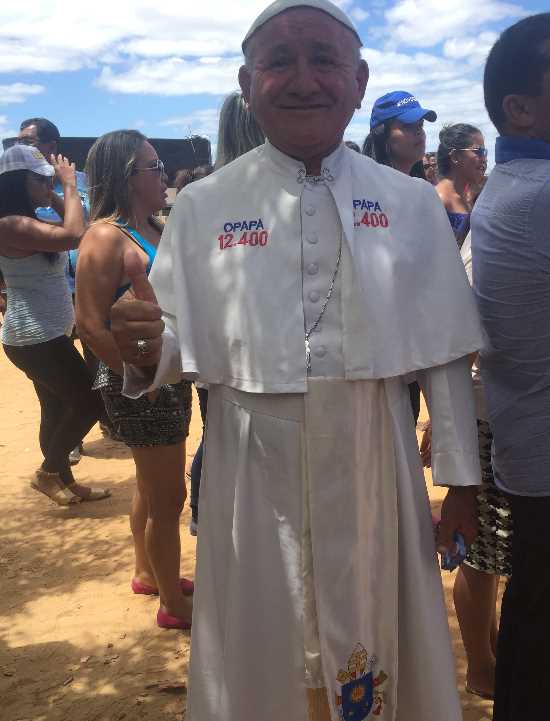 O que seria das eleições municipais de Petrolina sem os tipos mais inusitados e divertidos, para quebrar um pouco o clima? Pois é. Este ano tem até um papa na disputa por uma vaga na Câmara de Vereadores. Mesmo num sol de rachar, o Papa – é assim mesmo que ele é conhecido na cidade – não abre mão de sua túnica na hora de pedir o voto do eleitorado. Se os anjos disserem amém, talvez ele ganhe…a simpatia dos mais bem humorados. E provavelmente já vai se dar por satisfeito.