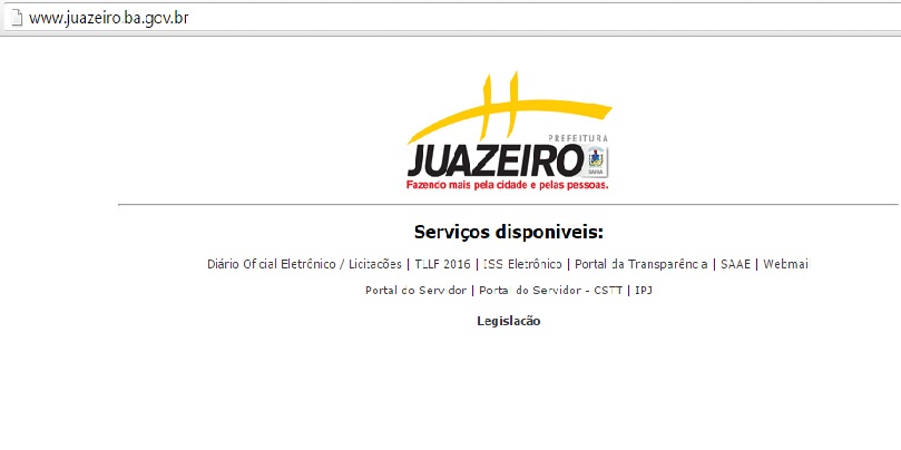A Prefeitura de Juazeiro ainda restabeleceu o site oficial do município, que mais uma vez foi alvo do ataque de hackers, há cerca de 10 dias, e continua fora do ar. Após a invasão, a assessoria de Comunicação da prefeitura garantiu que uma equipe do setor de Informática estava averiguando a situação, mas ao que parece, os serviços ainda não foram restabelecidos por completo. Apenas aquelas destinados aos cidadãos como ISS eletrônico, portal do servidor e diário oficial (entre outros) estão disponíveis.