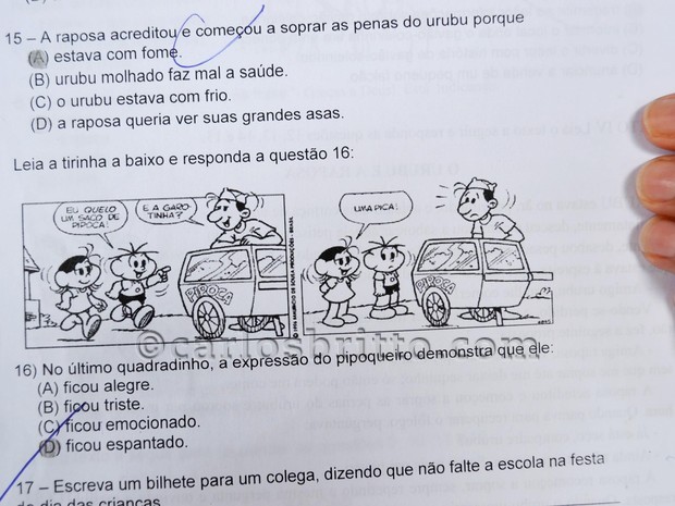 Procurada pelo G1, a assessoria de Mauricio de Sousa comentou o uso indevido da tirinha e classificou como “‘um descuido, tanto com os alunos como com os direitos do autor”.