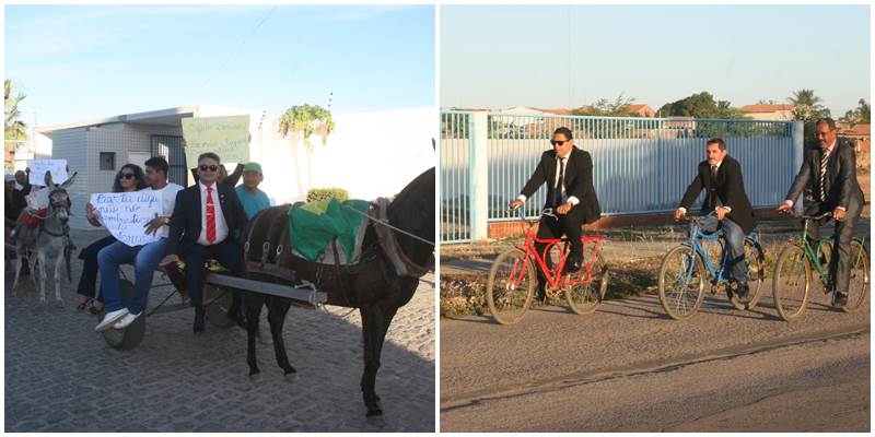 Os consecutivos reajustes no preço dos combustíveis levaram os vereadores de Juazeiro (BA), Joseílson Marcelino (PTB), Aníbal (PTC), Bené Marques (PSDB) e Domingão da Aliança (PRTB), a usarem a irreverência para protestar. Eles decidiram ir à sessão plenária da Câmara Municipal, na segunda-feira (21), de forma inusitada, utilizando-se de carroça e bicicletas como meio de transporte. Isso mesmo.