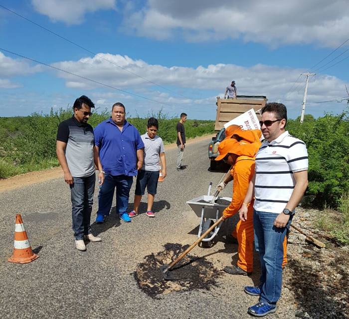 Isto ai é propagada enganosa,quem tá fazendo isto ai é a prefeitura,tapa 10 buracos é uma coisa ,agora tá vários só se ele fosse dono do banco do brasil.Eita povo que gosta de ser enganado,por isso estes país nunca vai pra frente.