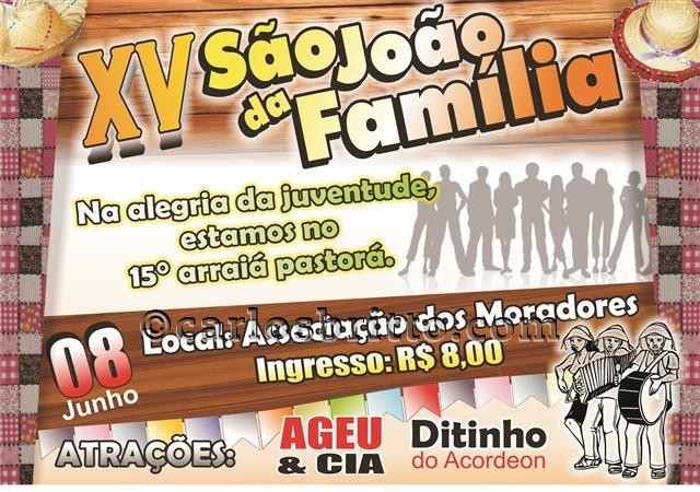 A Paróquia Santa Luzia, localizada no bairro Cohab Massangano, zona oeste de Petrolina, promoverá neste sábado (8) o 15° “São João da Família”, que este ano trará o seguinte tema: ‘Na alegria da Juventude estamos no 15º Arraiá da Pastorá’.