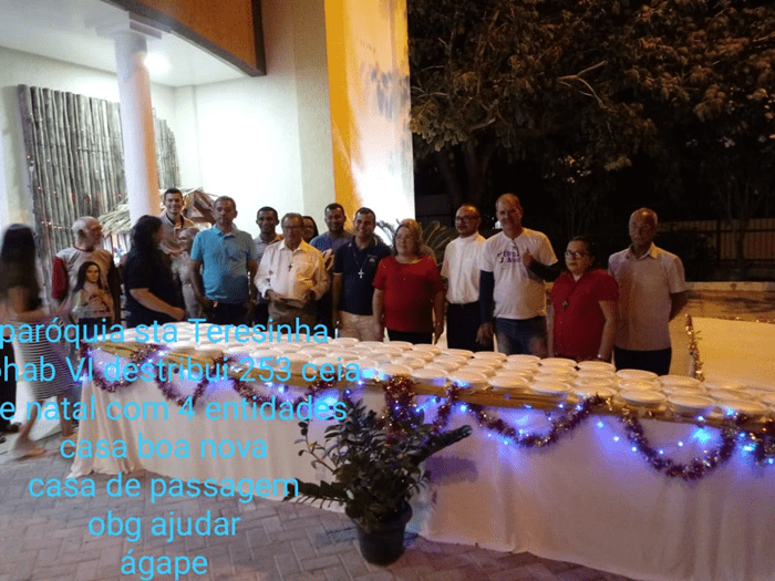Os católicos da Paróquia Santa Teresinha, na Cohab VI, zona oeste de Petrolina, cumpriram uma missão nobre neste final de 2019. Eles arrecadaram e distribuíram 253 ceias natalinas a instituições e entidades filantrópicas da cidade.