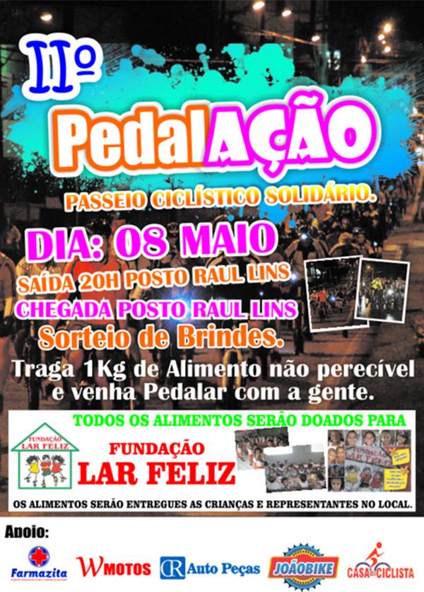 Trata-se do ‘2º Pedalaço’, um passeio ciclístico para arrecadar alimentos à Fundação Lar Feliz, que cuida de crianças carentes na cidade.