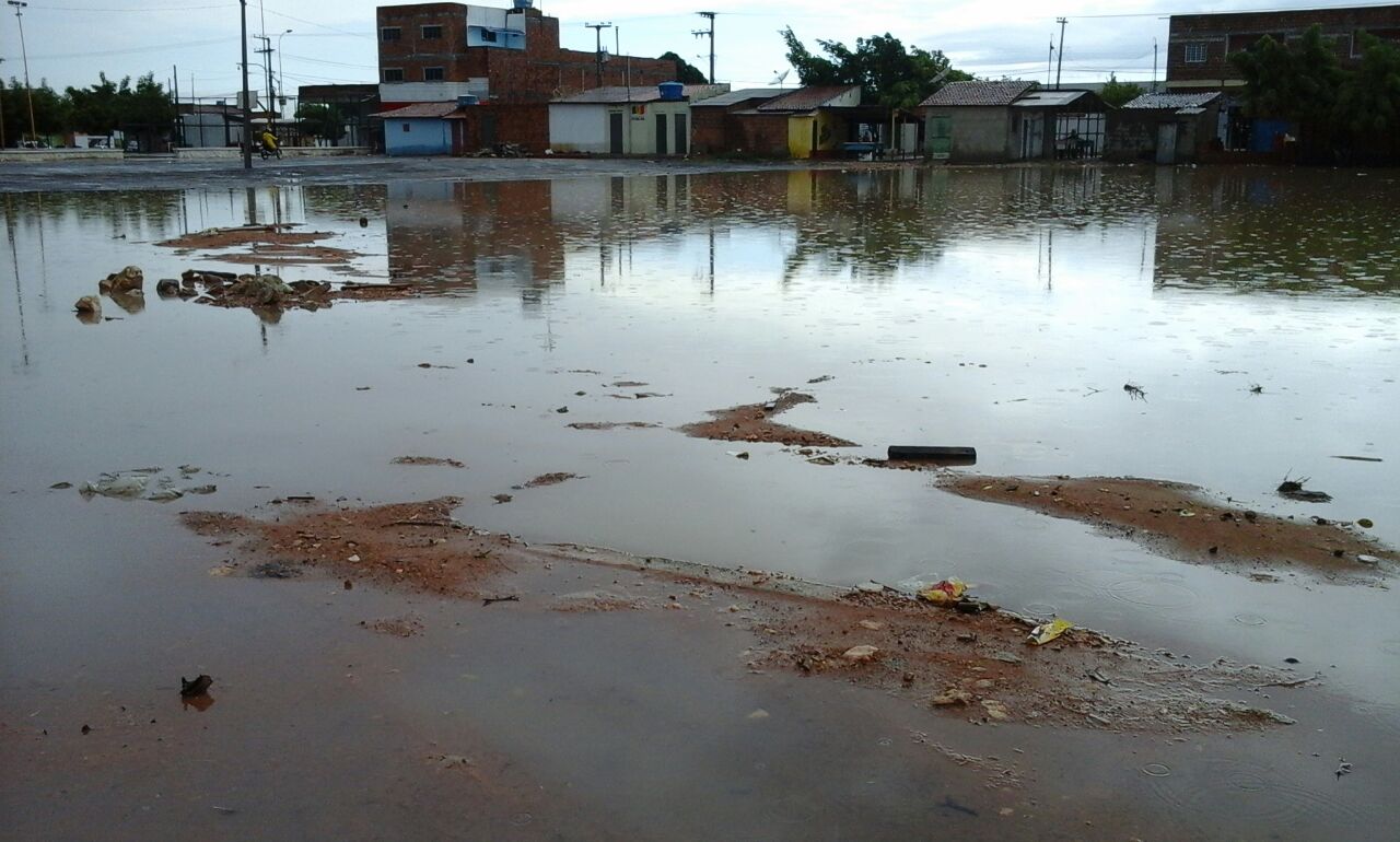 Uma foto enviada ao Blog por um morador mostra como em poucas horas de chuva o pátio da feira que divide o bairro José e Maria e Vila Eulália, na zona norte de Petrolina, ficou completamente alagado.