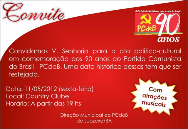 A Direção Municipal do Partido Comunista do Brasil (PCdoB), em Juazeiro, vai promover na próxima sexta-feira (11), a comemoração dos 90 anos de fundação da legenda.
