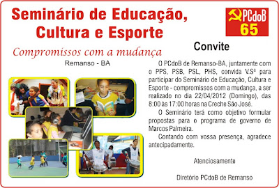 Prossegue até as 17h deste domingo (22) em Remanso (BA), norte do estado, um seminário promovido pelo PCdoB, que apresenta como pré-candidato a prefeito o advogado Marcos Palmeira.