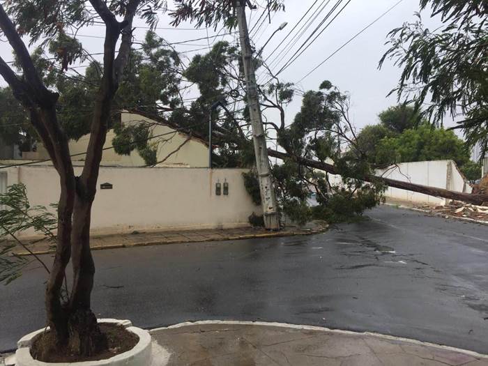 Já no Jardim Amazonas, na zona oeste, o cenário não foi diferente. A ventania deixou um pé de algaroba, localizado na Rua 15, prestes a cair. Como existe o risco de a árvore atingir a fiação elétrica, moradores da área já teriam acionado a Celpe para enviar uma equipe até o local.