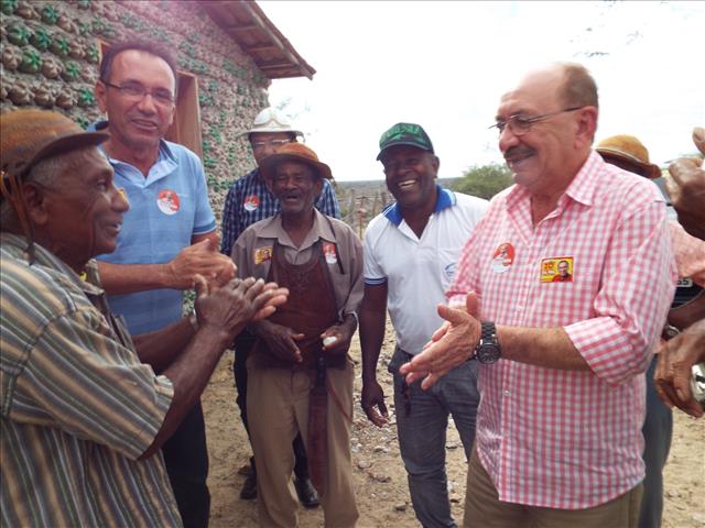 A primeira parada foi na comunidade de Serrote do Tirano. Depois, Alcântara também esteve nos povoados de Barro Vermelho e Mundo Novo, zona rural de Curaçá, no norte do estado. Fôlego é o que não falta ao candidato, que tenta pela primeira vez uma vaga na Câmara Federal – a exemplo do vereador Crisóstolo Lima ‘Zó’ (PCdoB), que faz dobradinha com Alcântara para a Assembleia da Bahia e também esteve com ele nas visitas. (Foto: Assessoria/divulgação)